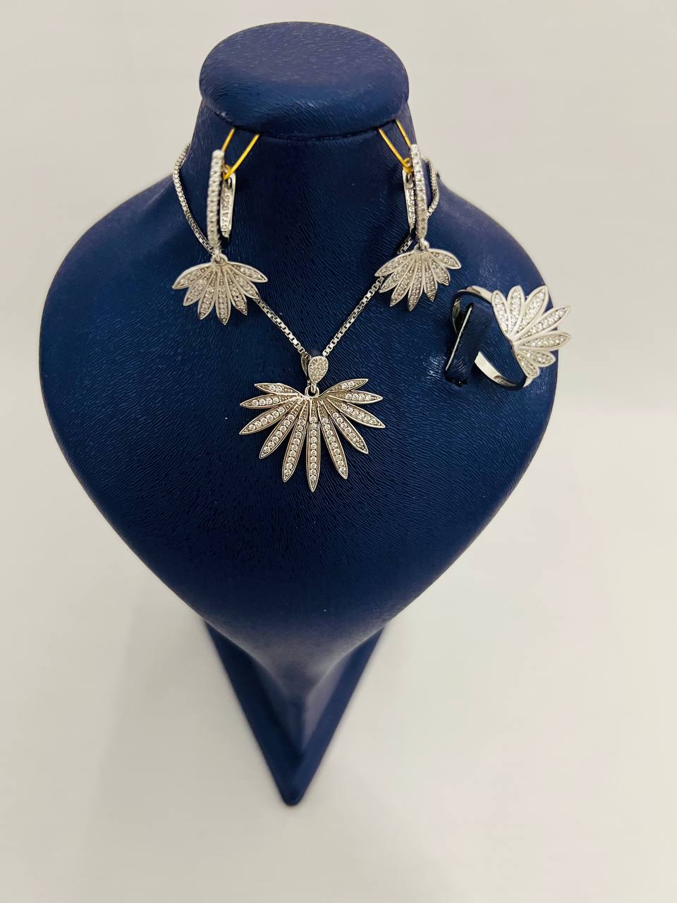 نیمست نقره طرح برگ نخل با نگین اتمی همراه انگشتر کد 126NS