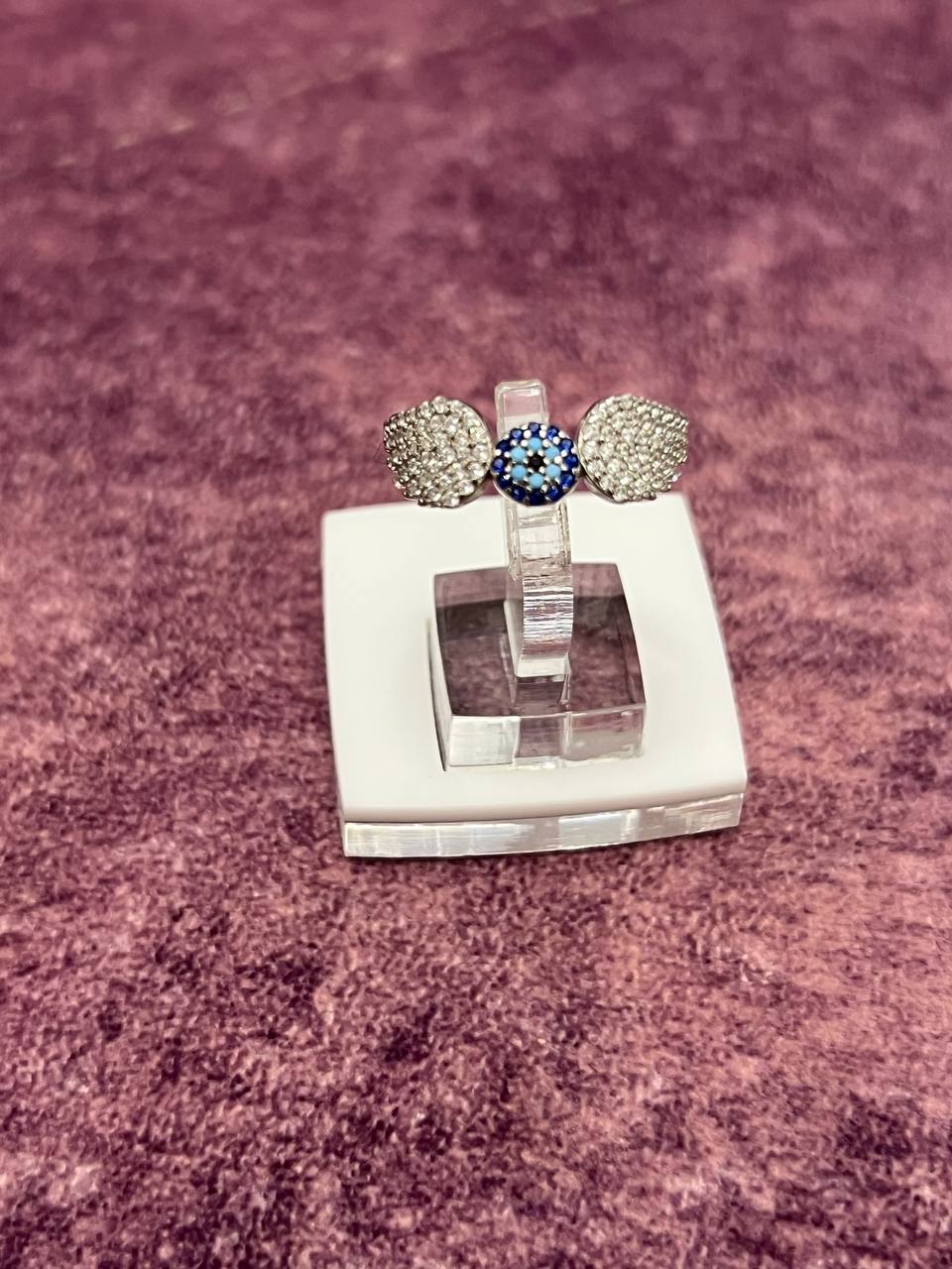 انگشتر نقره چشم نظر با نگین اتمی آبی و سفید – کد 119